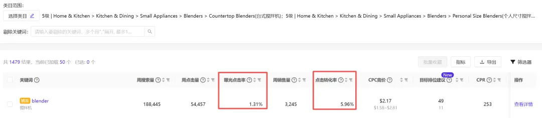 竞品在该关键词下的点击率和转化率表现。