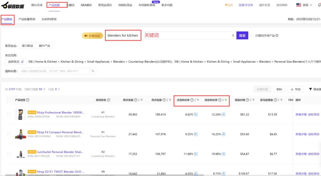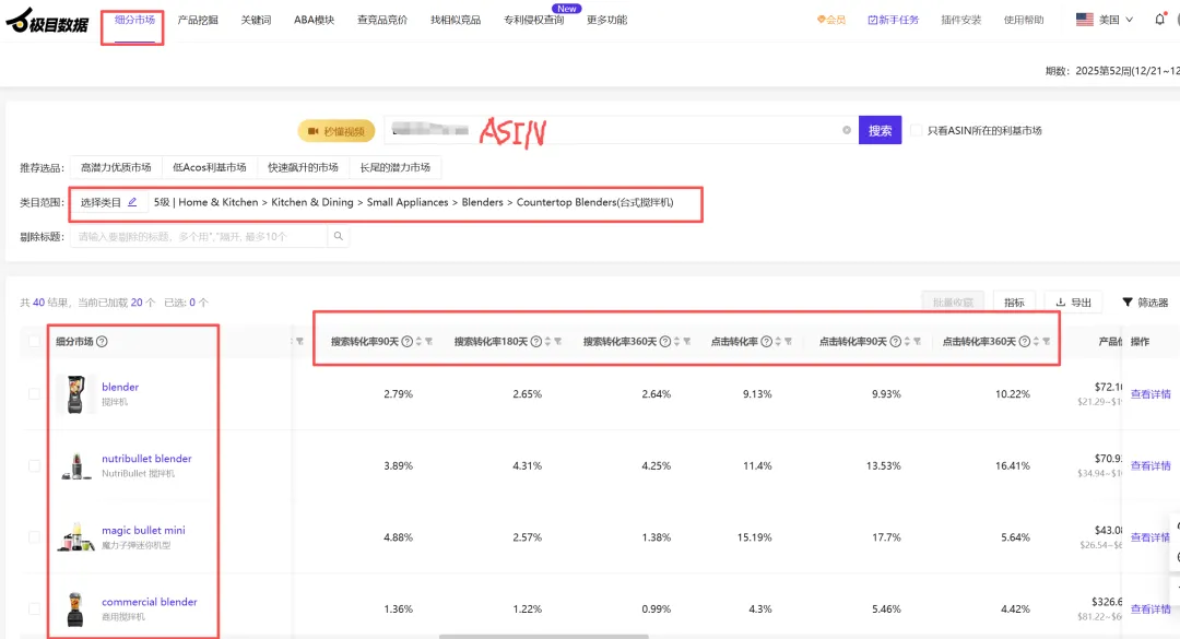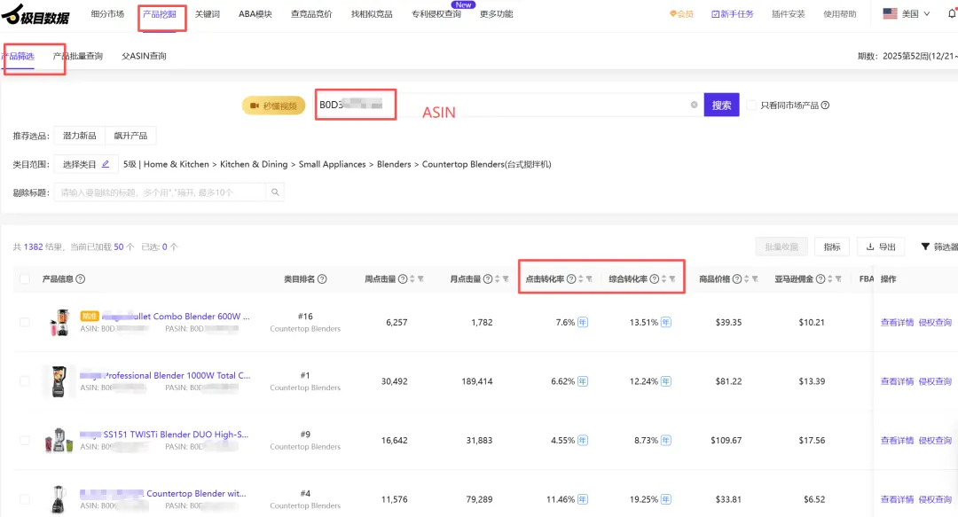 竞品 ASIN 在关键词下的点击与转化表现
