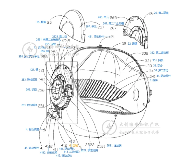 在设计类似的自清洁猫砂盆时,需要避开“滚筒旋转筛分+底部安全开关+可开合翻盖维护”这一套组合方案。即使尝试不采用其滚轮设计(避开权利要求16),仍可能因其基础架构(权利要求1)而面临侵权风险。