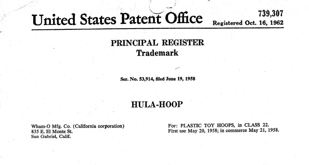 HULA HOOP,翻译就是呼啦圈,早在1962年10月16日完成商标注册,妥妥一个“老字号”,已成为全球通用词汇。