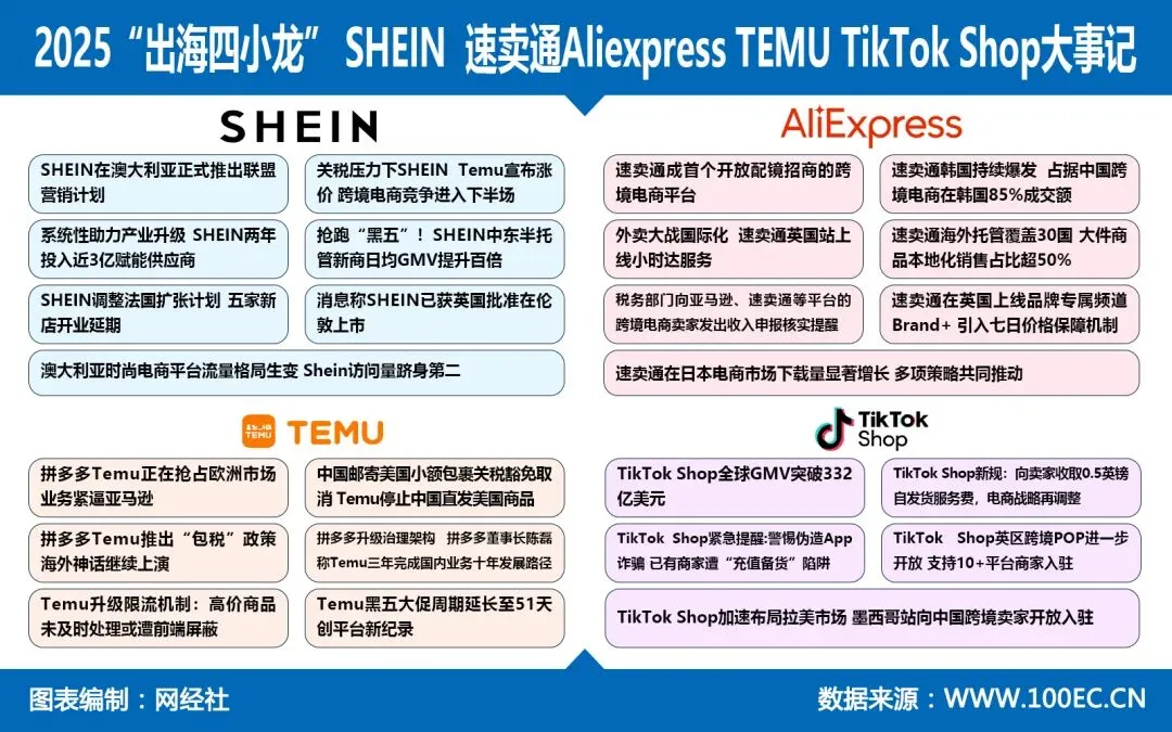 2025“出海四小龙” SHEIN 速卖通Aliexpress TEMU TikTok Shop大事记