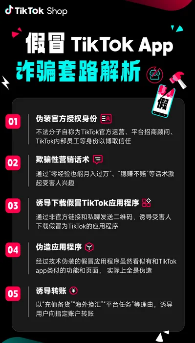 事件三:TikTok Shop紧急提醒:警惕伪造App诈骗 已有商家遭“充值备货”陷阱