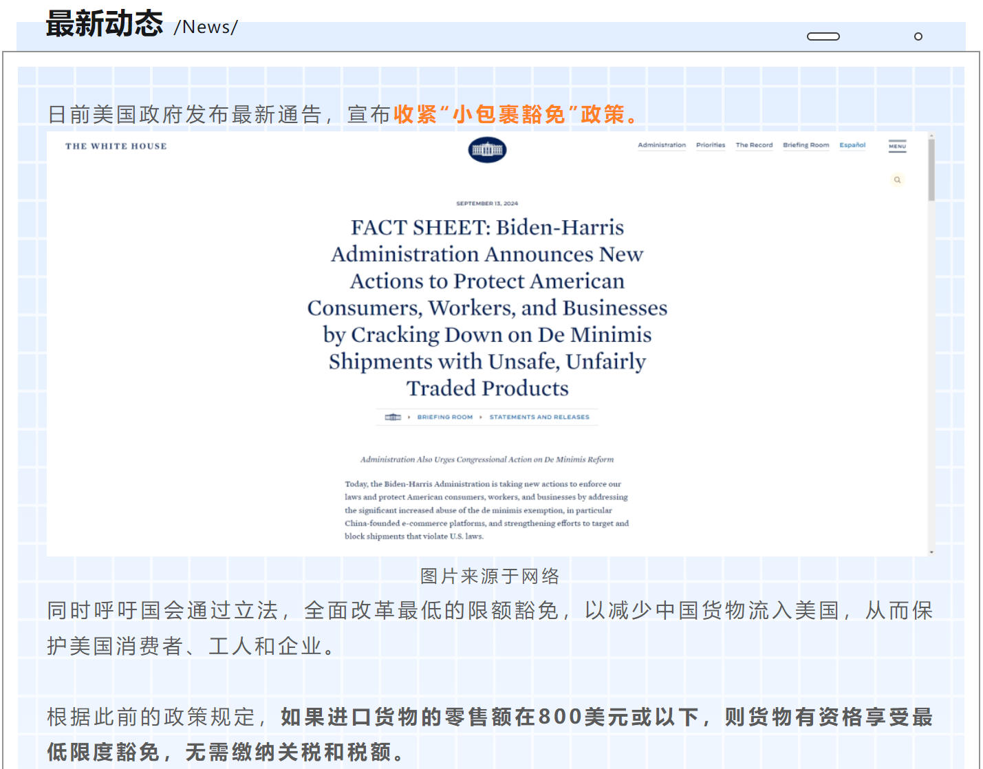 资讯 | 美国新政出台,小额豁免政策或将迎来新变革!!!