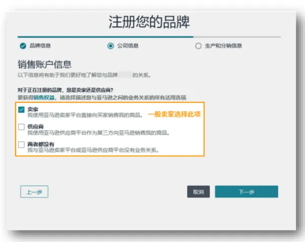 1.身份选择:勾选“卖家”选项;