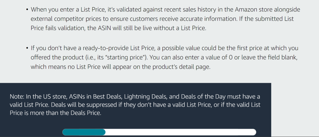 验证逻辑是通过亚马逊设定的自动验证逻辑进行验证,该逻辑可以验证市场价是否代表您或其他零售商/卖家近期大量销售该产品的价格。您有责任确保您提供亚马逊的市场价是最新的。 亚马逊全球开店