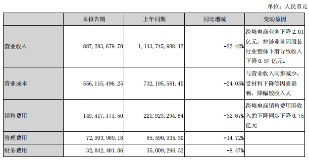 另外,价之链的营业收入占总营收的比例比去年同期下降了13%左右,跨境业务萎缩。受到销售收入下降的影响,跨境电商销售成本也下降了0.75亿元。