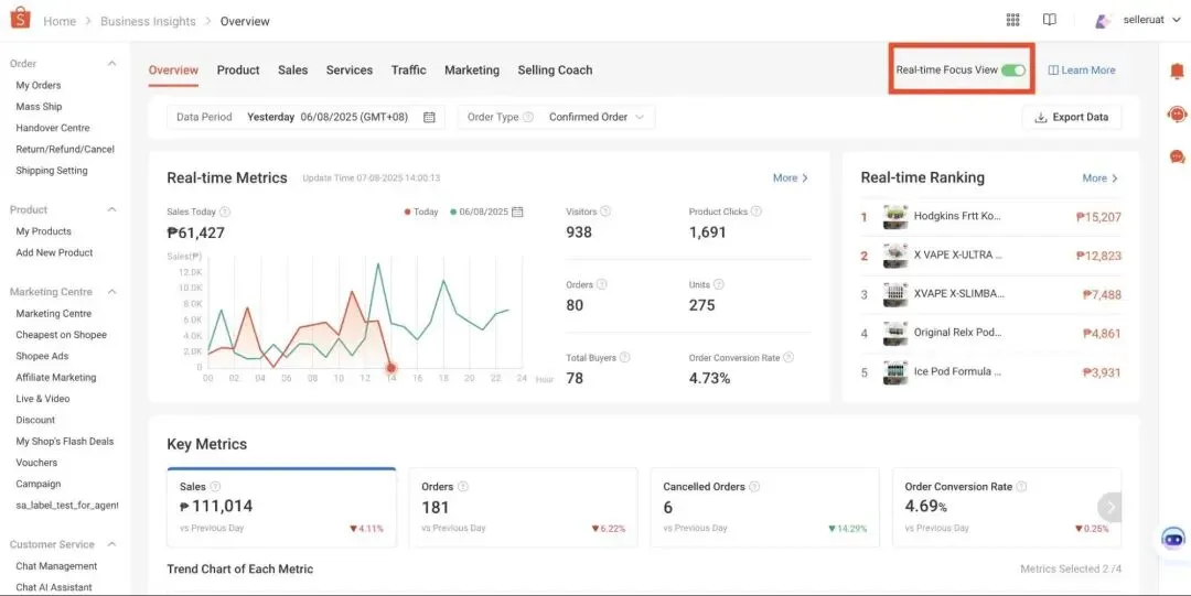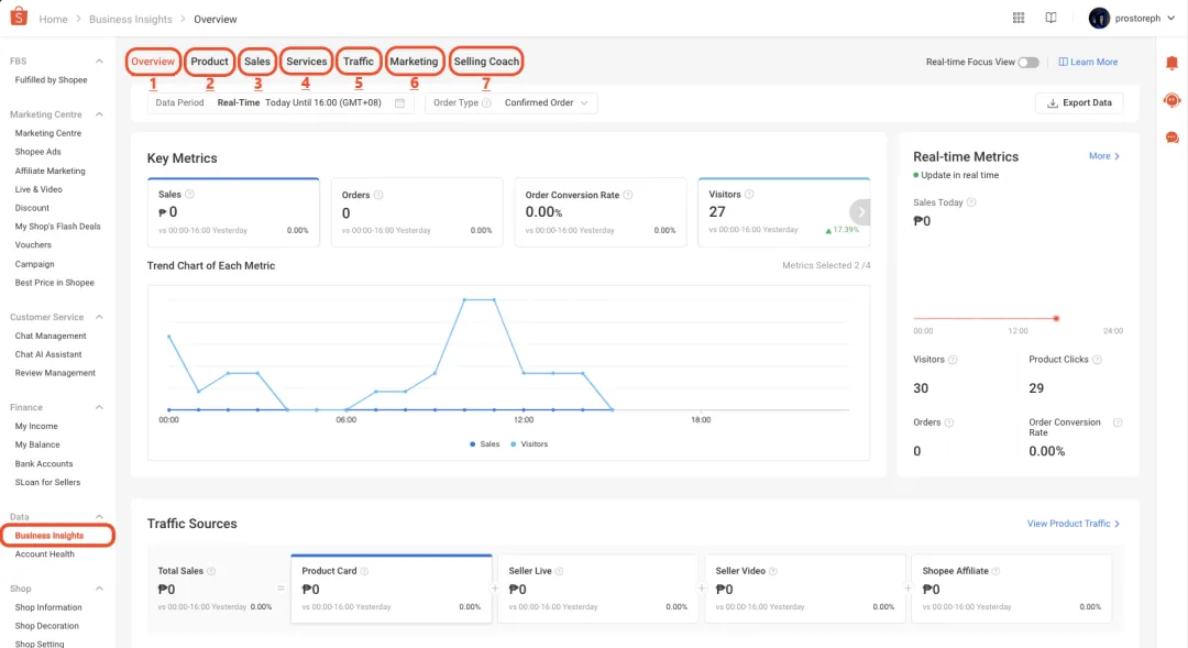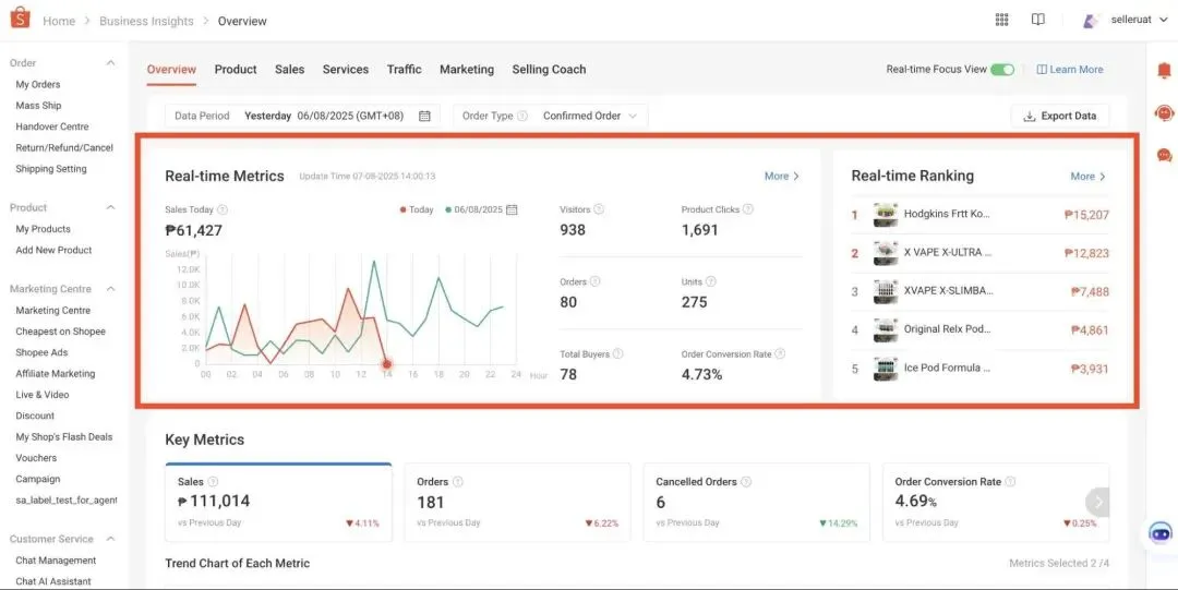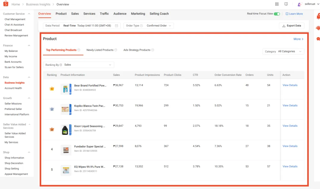 您可以通过 Shopee App 或卖家中心的商业洞察功能访问您的店铺表现数据。