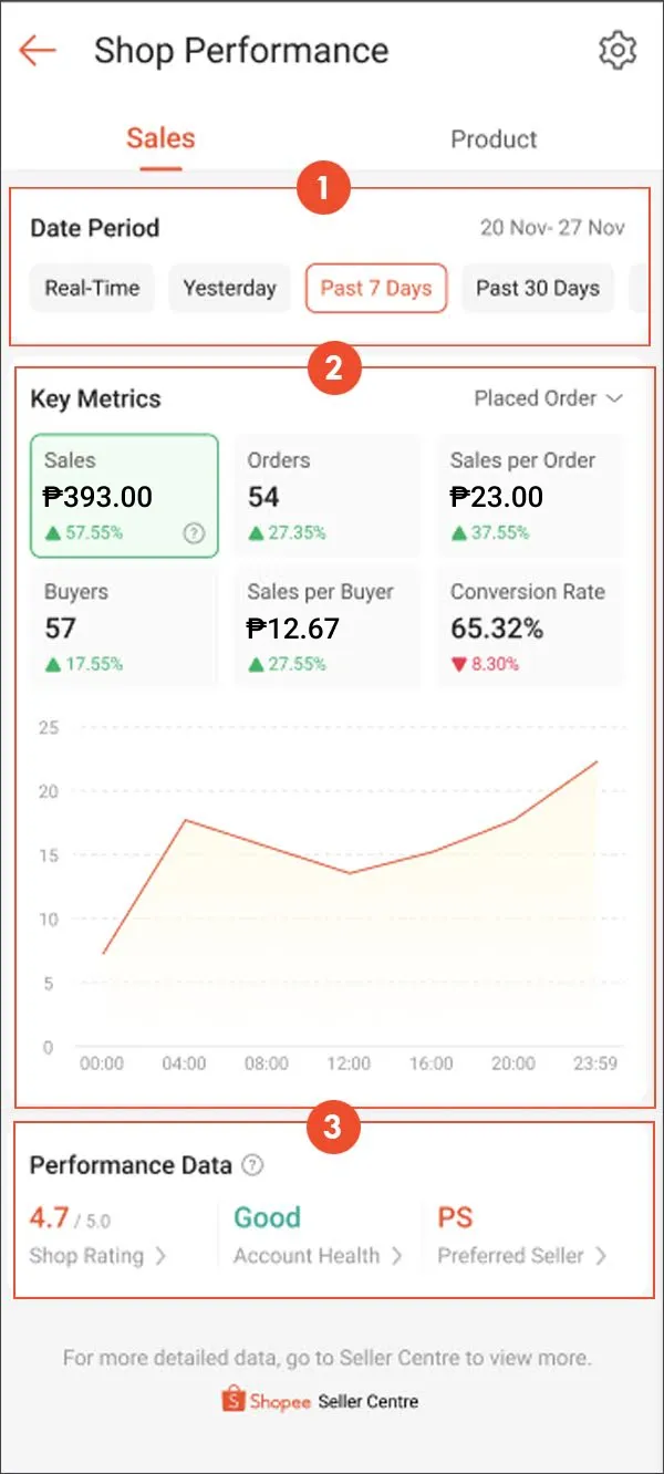 使用 Shopee App 中的店铺表现功能,随时随地快速查看数据;使用卖家中心的商业洞察,深入分析店铺表现。💡 提示: