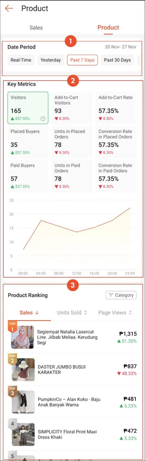 商业分析功能可以让您在 Shopee App 和/或卖家中心查看销售趋势和表现概述。