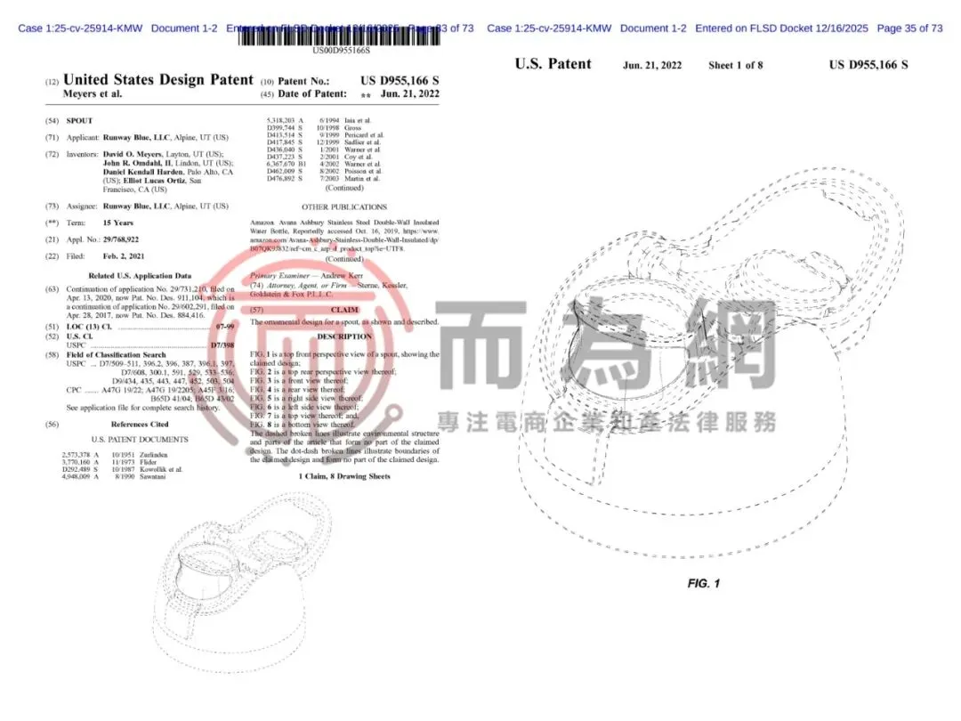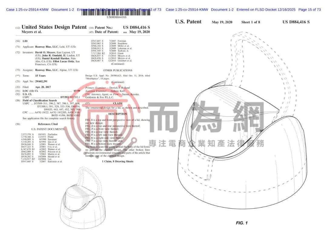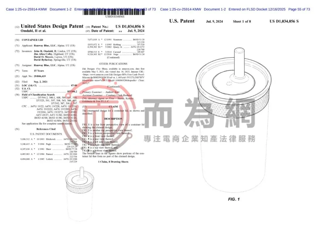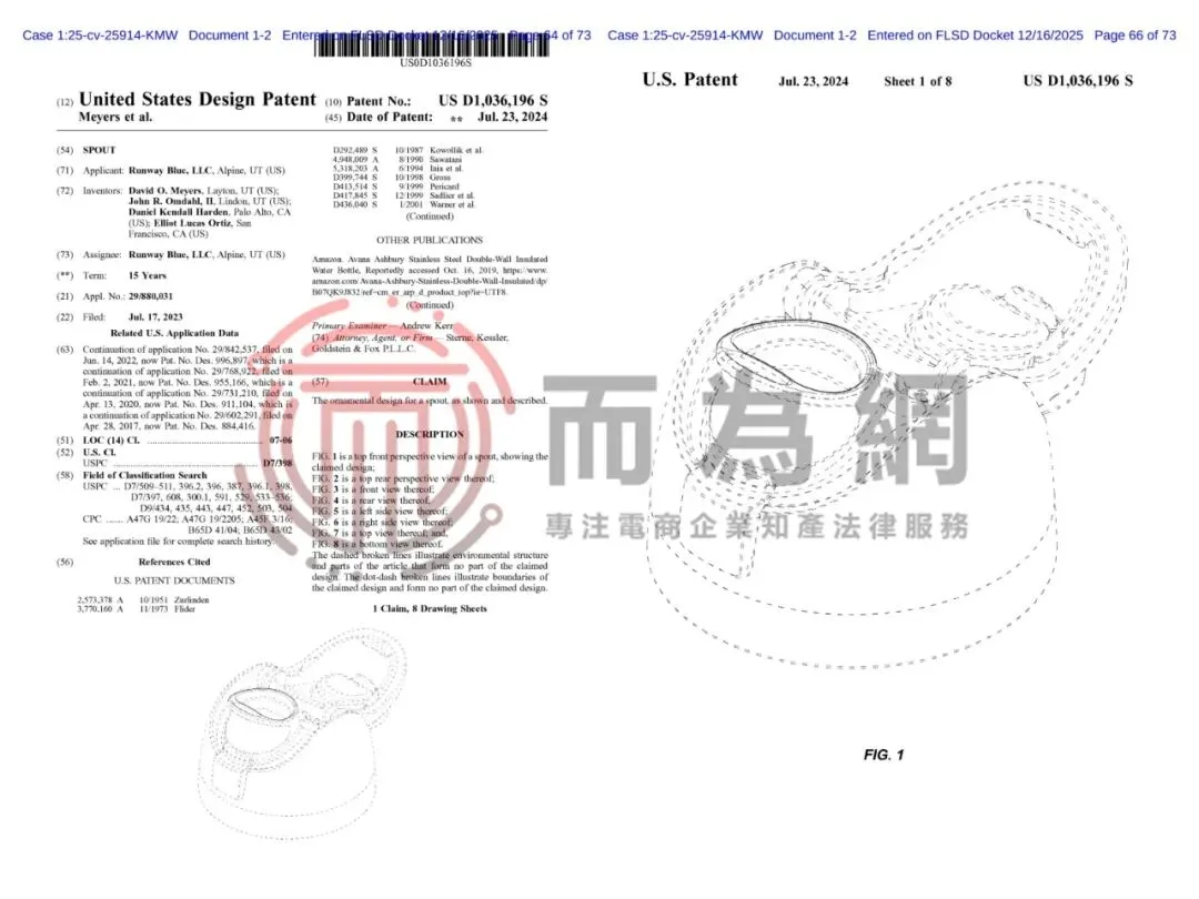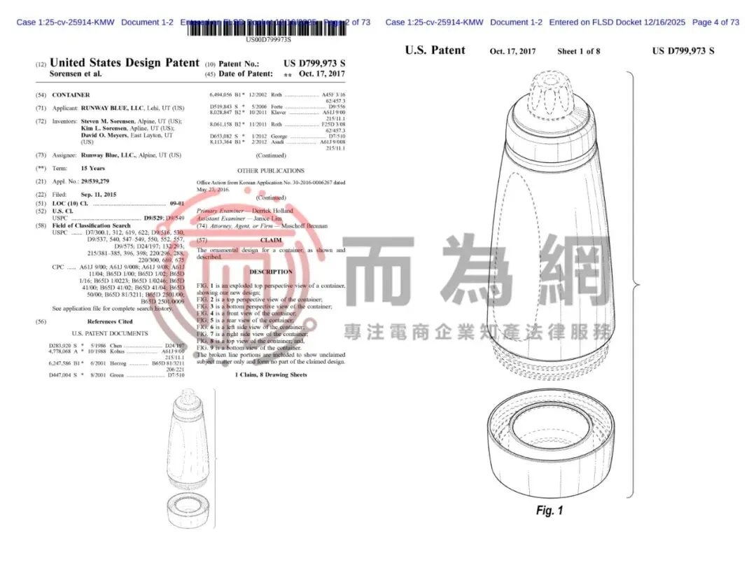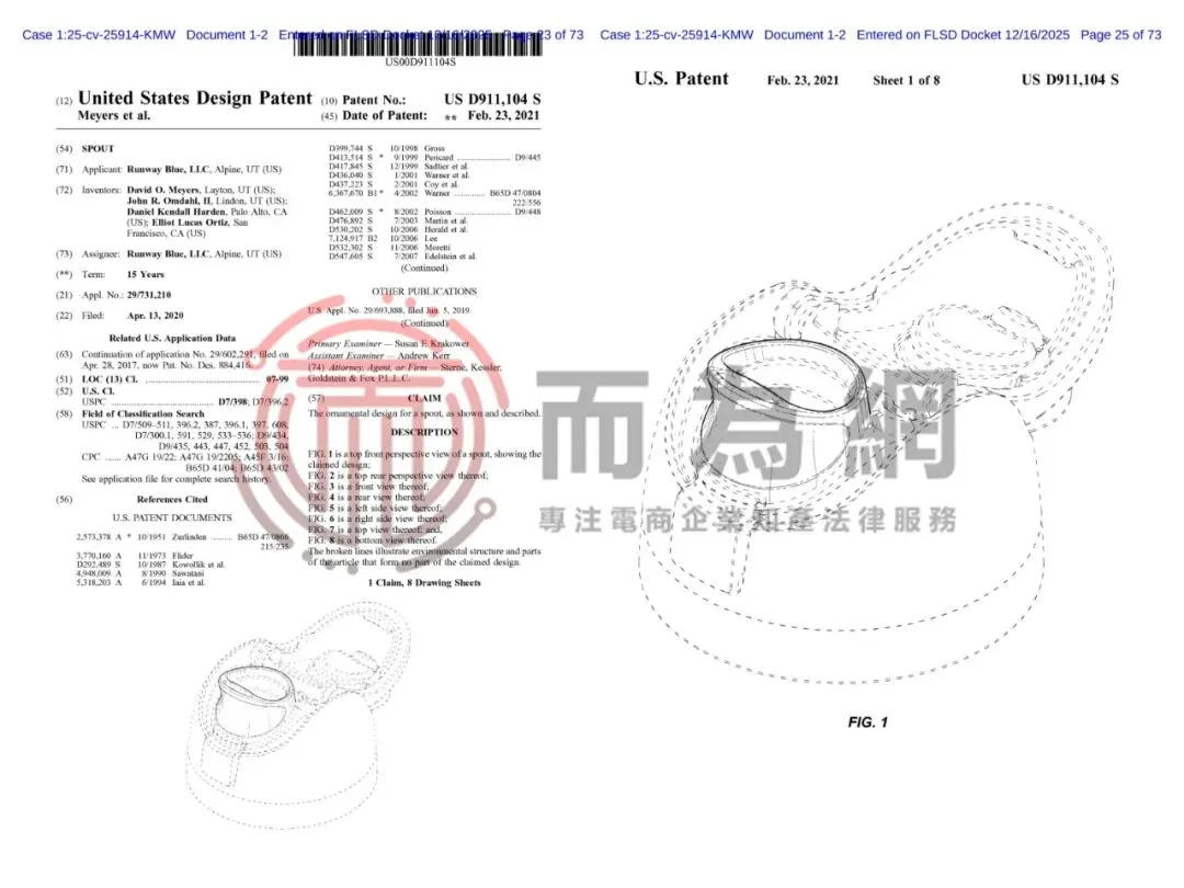 【侵权快讯】25-cv-25914 129家店铺中招!Blender Bottle 杯具7个商标+7项专利维权中!