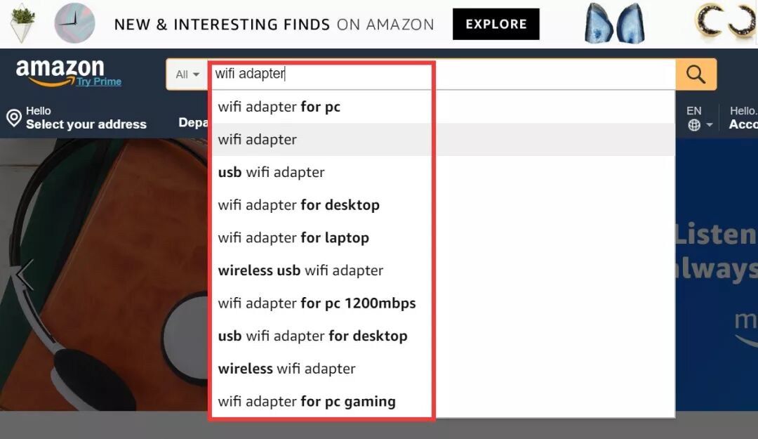2、搜索框输入关键词必须产品核心关键词,有些可能有2~3个,如wifi adapter还可以输入wifi dongle。