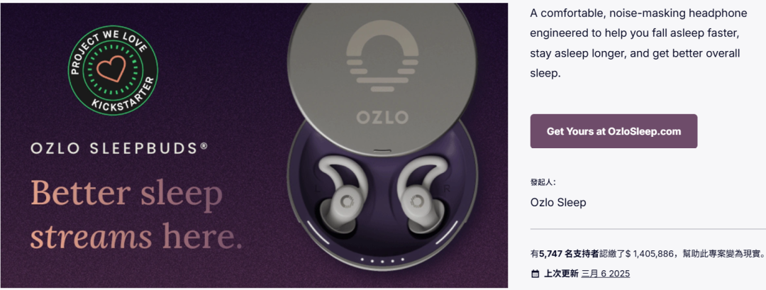 数据显示,Ozlo Sleepbuds在indiegogo、kickstarter分别筹到816万美金、140.5万美金,共获得35706名支持者。2024年10月,获得1200万融资,在美国、英国等多国热卖,备受全球瞩目。