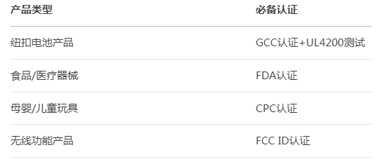 美国站重点认证清单: