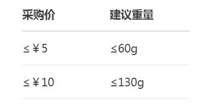 东西稍贵点(采购价 ≤ 10块),重量尽量别超过130克。轻一点,运费就少一点。
