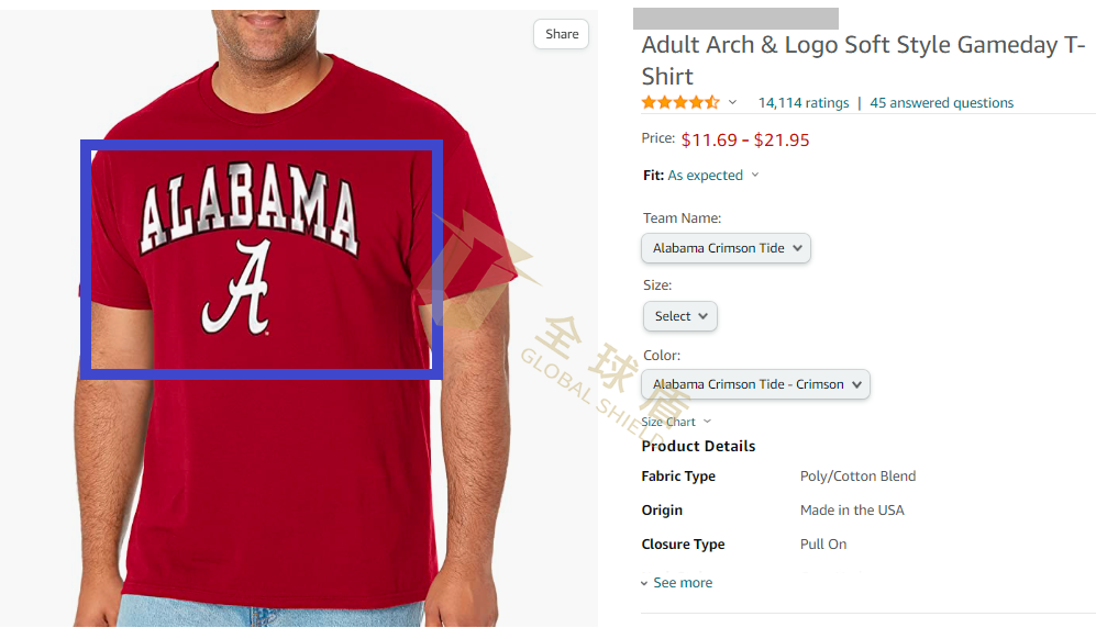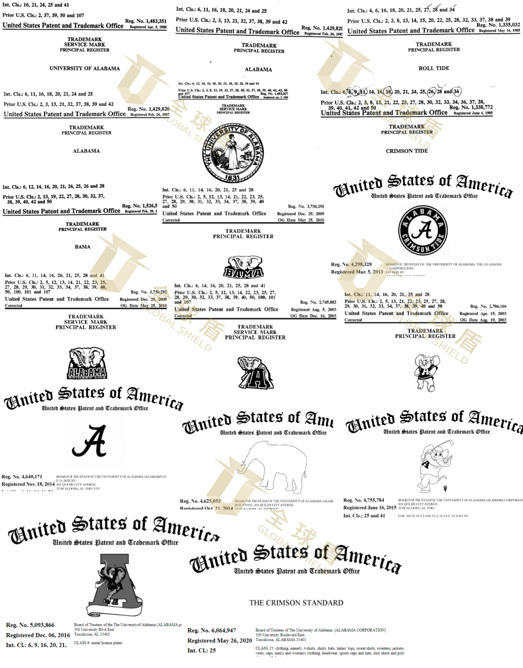 需要注意的是ALABAMA大学名字的注册商标与其著名的大象图形,不可以轻易使用在产品的标题、描述以及包装上,否则会有侵权风险。