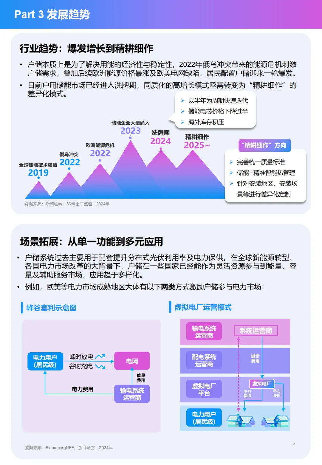 在户用储能方面,则体现出“长期投资”的消费逻辑和地域性显著的消费倾向。欧美、澳洲市场用户关注户储系统稳定性与售后服务质量;而东南亚、非洲等地则更看重性价比与设备的易安装性。当前,海外户储市场呈现从“爆发增长”向“精耕细作”发展趋势,应用场景日益多元,功能正朝“光伏+储能”一体化、高压系统升级、AI 能效管理等方向演进。