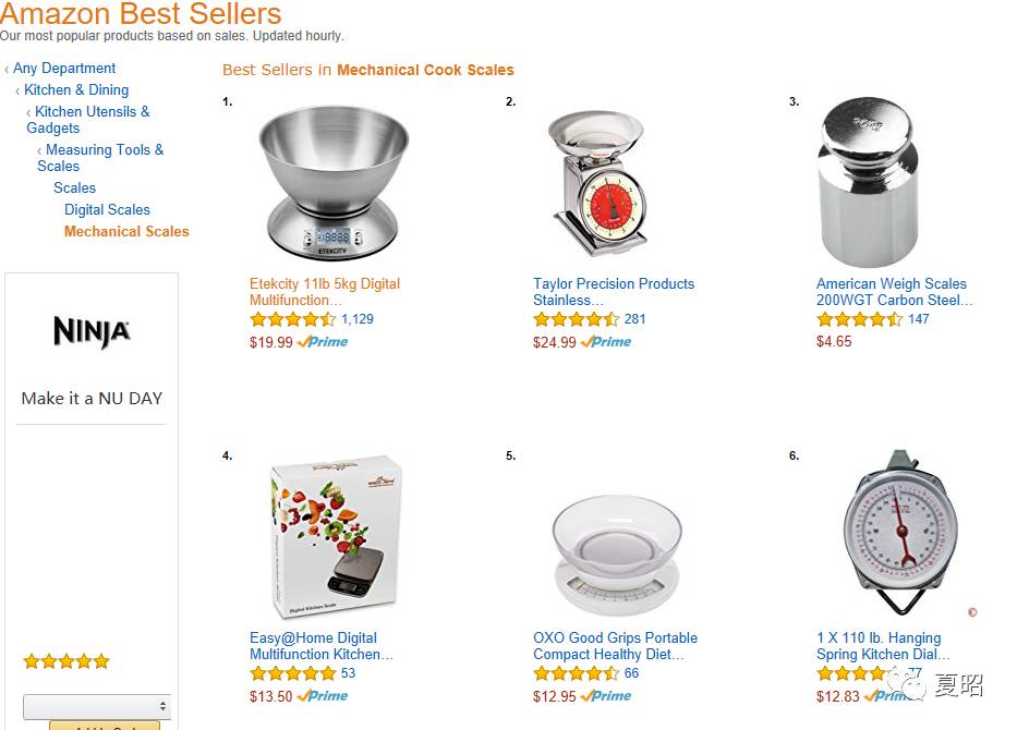 一,我们通过主核心关键词搜索商品在amazon上的排序,在搜索框中搜索kitchen scale。归纳这些卖家在Bullet Point上卖点,如下图红色方框处: