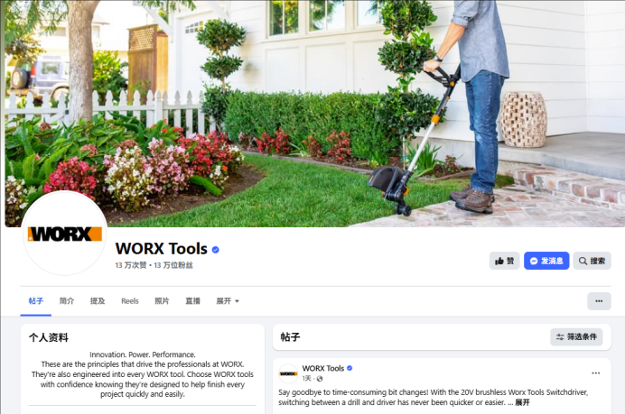 当传统工具品牌还在投放硬广时,老牌工具WORX却紧跟潮流,在社交媒体营销上差异化布局。