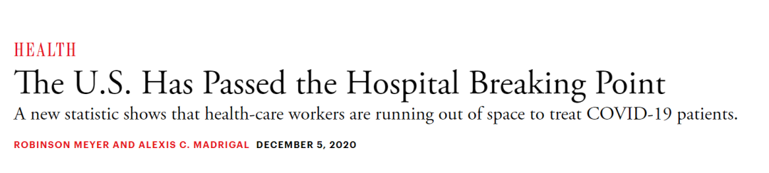 12月5日,《大西洋月刊》的一篇报道表示:美国医疗系统已经到达崩溃点。