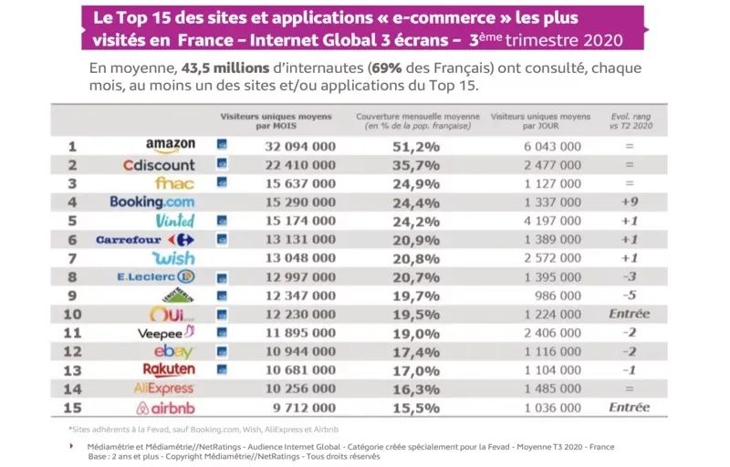 虽然亚马逊法国公司在法国连遭不顺,但根据Médiamétrie的数据显示,亚马逊在访问量前15名的法国电商平台中仍排名第一。