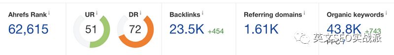 P.S. 以下是Ellen即将获得外链的域名在Ahrefs的metrics,你说这条backlink值多少呢?