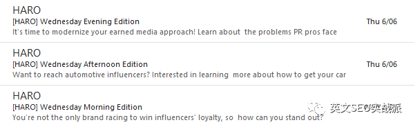 任何人都可以订阅HARO, 每天它会定时发送三封邮件,上下午以及晚上各一封。