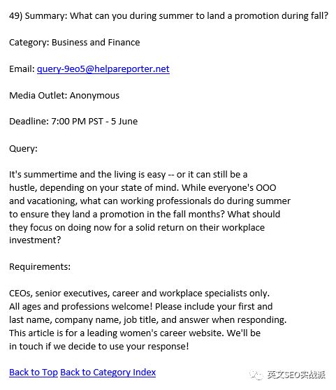 这个策略就是HARO,可操作性很强,流程简单,而且获得的链接直接指向你的官网主页。