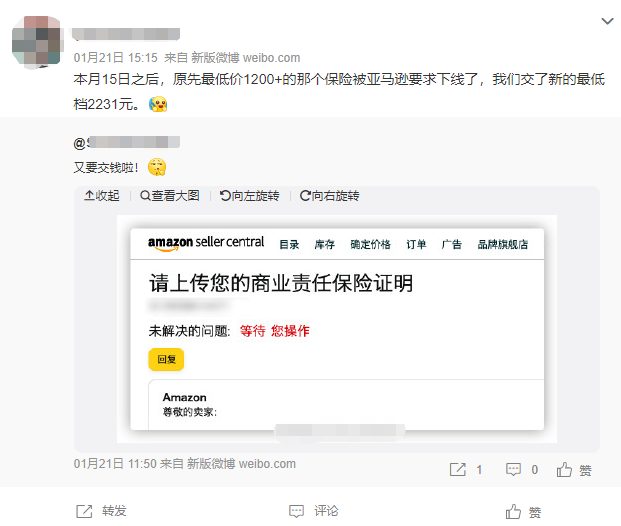 2021年2月16日集中收到亚马逊邮件的卖家,如果在3月15日没有收到来信,或者无法确认卖家的信息,新入账的款项将被保留在卖家账户中。或者在4月15日之前无法验证卖家的保险证明,将无法在亚马逊上销售。