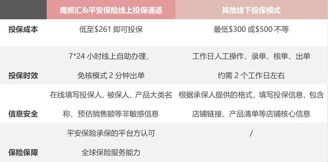 通过平安采购保险,不仅能享受超实惠的价格,同时还能做到和在亚马逊后台一样的纯线上投保模式,而且快至2分钟通过邮箱下发中文保单、英文保险凭证和电子发票,之前也有部分卖家朋友是通过线下投保方式办理的,这里就线上和线下两模式给大家做个对比参考: