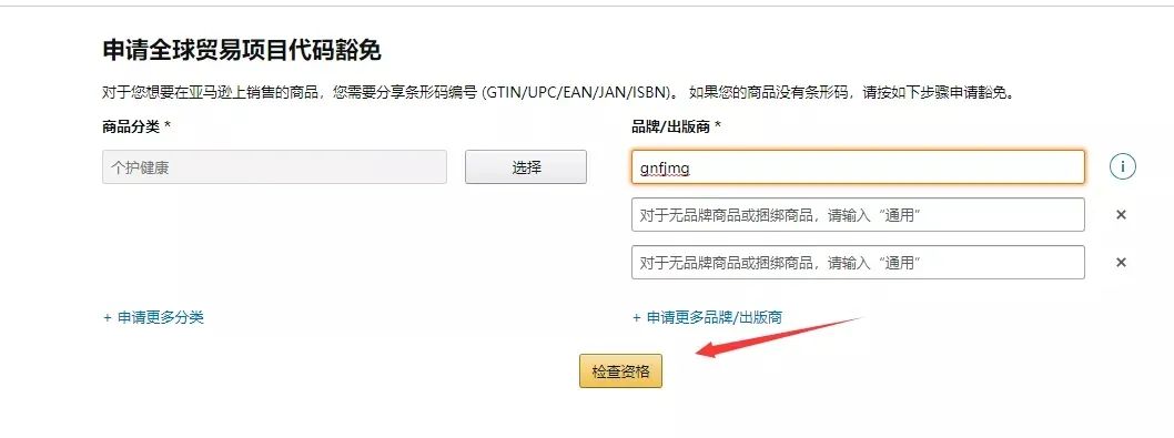 需要注意的是,该界面需要您有卖家账号才能打开,在您填上品牌名后,下方的“检查资格”会变成黄色;