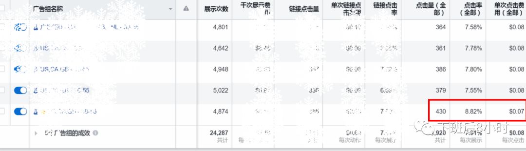 (3)广告版位的拆分对比,从而筛选出广告成效最好的几个广告版位