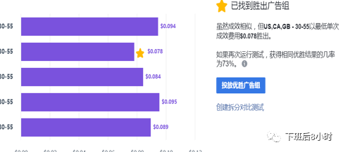 (1)受众拆分对比测试,筛选出广告成效最高的一组受众。