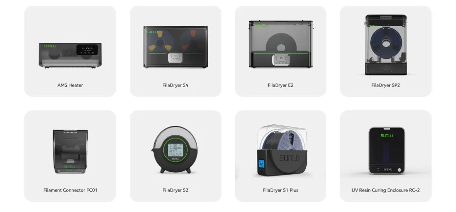 核心技术:针对高速机研发了支持高达600mm/s打印速度的高速打印配方。其FilaDryer具备精准温控技术,最高可达110°C,适用PA/PEEK等工业级材料 。