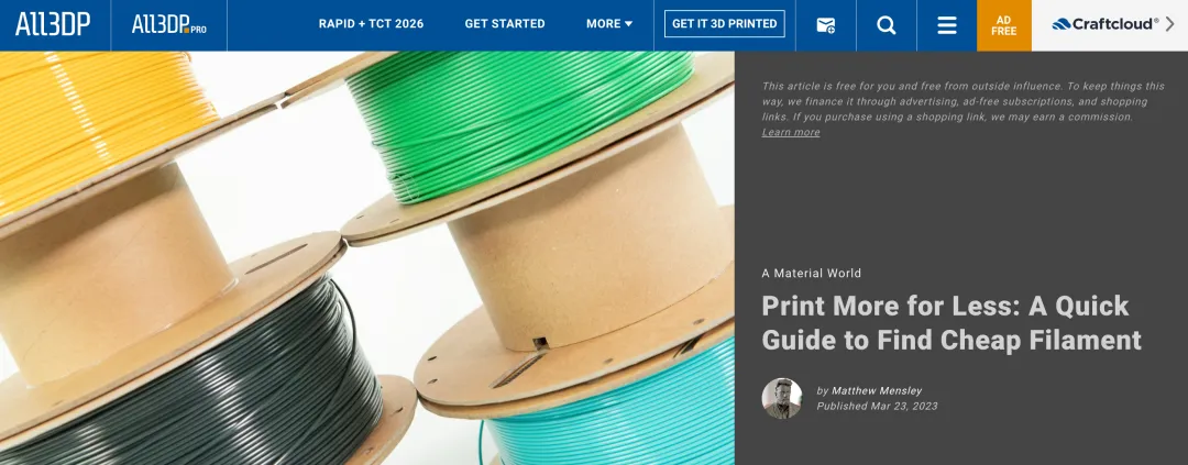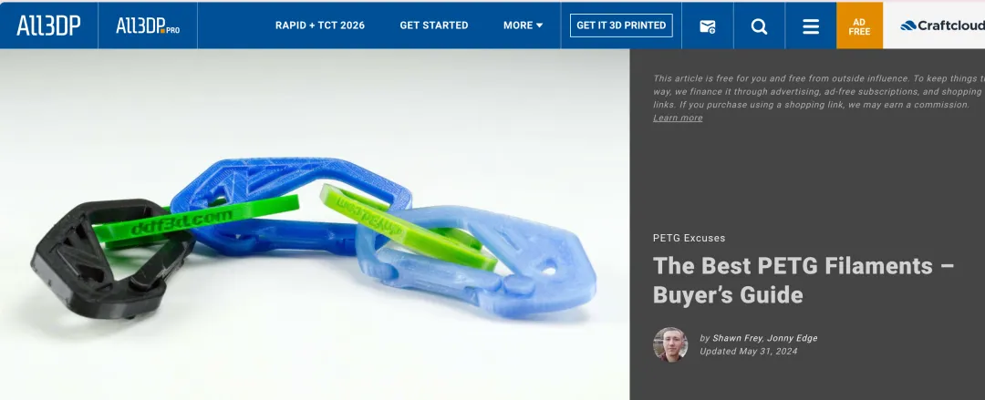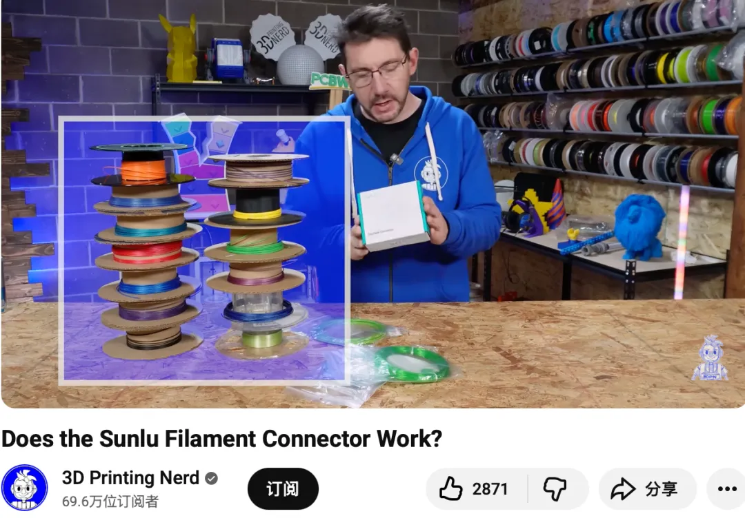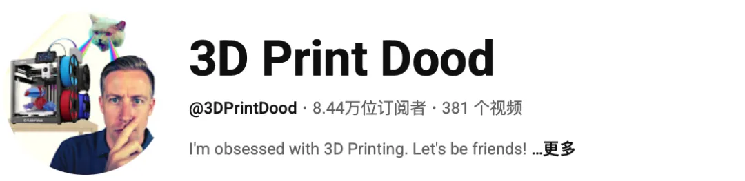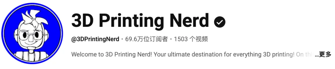@3D Printing Nerd :在YouTube坐拥60万+粉丝,是3D打印科技测评界头部意见领袖。视频面向全球范围内从小白到专家级别的3D打印机用户,具有极强的行业公信力与极高的粉丝黏性。