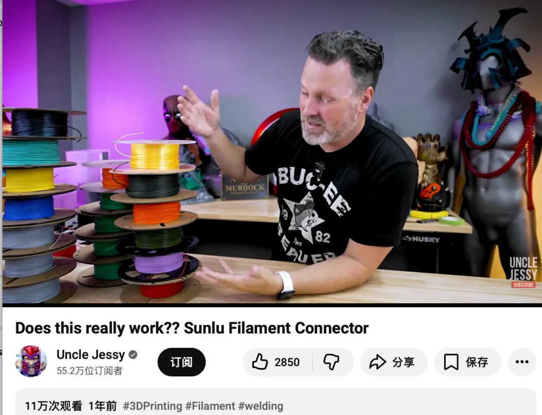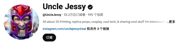 @Uncle Jessy:这位拥有50万+粉丝的科技测评与Cosplay极客,其受众群体极其广泛,主要面向热衷于模型制作、道具复刻以及对桌面级3D打印机感兴趣的进阶玩家与大众爱好者。