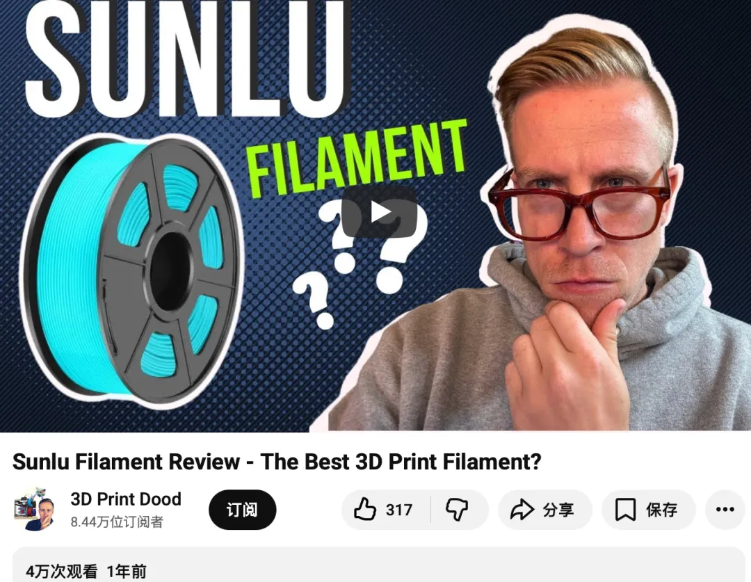 YouTube(深度背书):作为海外3D打印受众的核心阵地,SUNLU主要在YouTube发布产品开箱、极端压力测试、烘干盒温控对比、以及长达数十小时的打印延时摄影 。这些长视频不仅是硬实力的展示,更是最好的用户教育载体。