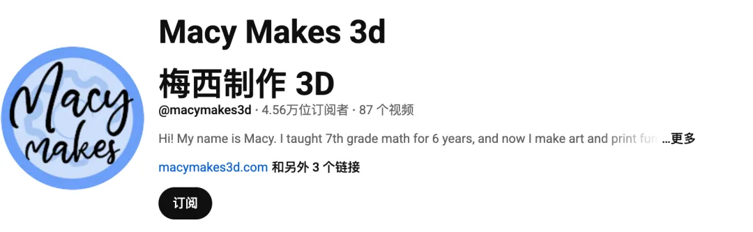 Macy Makes (@macymakes3d):活跃于Instagram和 YouTube 的双栖达人,属于泛科技与手工DIY圈层的中腰部KOL,拥有4万+订阅数。其主要面向对象为女性创客、手工艺术爱好者、STEM教育群体以及追求美观创意设计的轻度3D打印玩家。