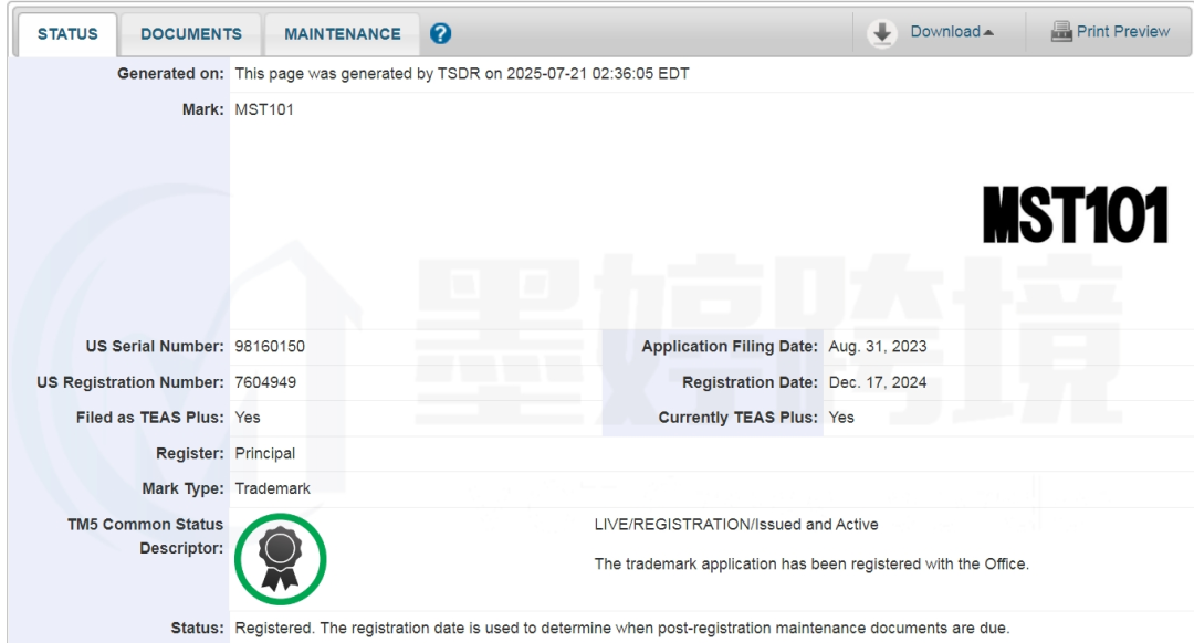 Bavne LLC 拥有 MST101品牌在多个国家的商标权,并已开展跨境维权行动。已有卖家因未经授权销售印有“MST101”的产品而遭遇商标侵权投诉,甚至面临账户冻结、资金扣押等风险。我们建议跨境卖家务必自查,避免使用相关商标、关键词,及时规避风险。