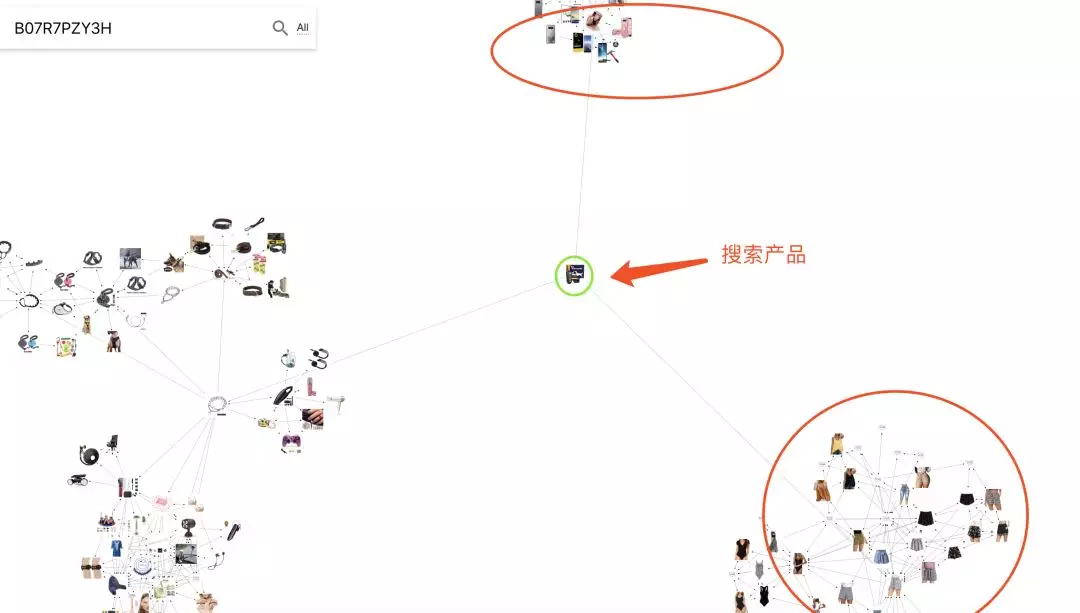 如上图,每个产品图片,都有箭头指向,产品图片被指向的箭头越多,说明流量来源越多。