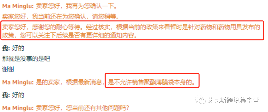 很多卖家很担心,因为他们很多产品的包装是属于聚酯薄膜袋,有卖家开了case,询问了官方的服务团队,亚马逊告知结果如下:该政策是面向药物和药物用具发布的,主要针对所有透明或单色的聚酯薄膜袋商品,也就是销售的listing本身,而非商品包装。