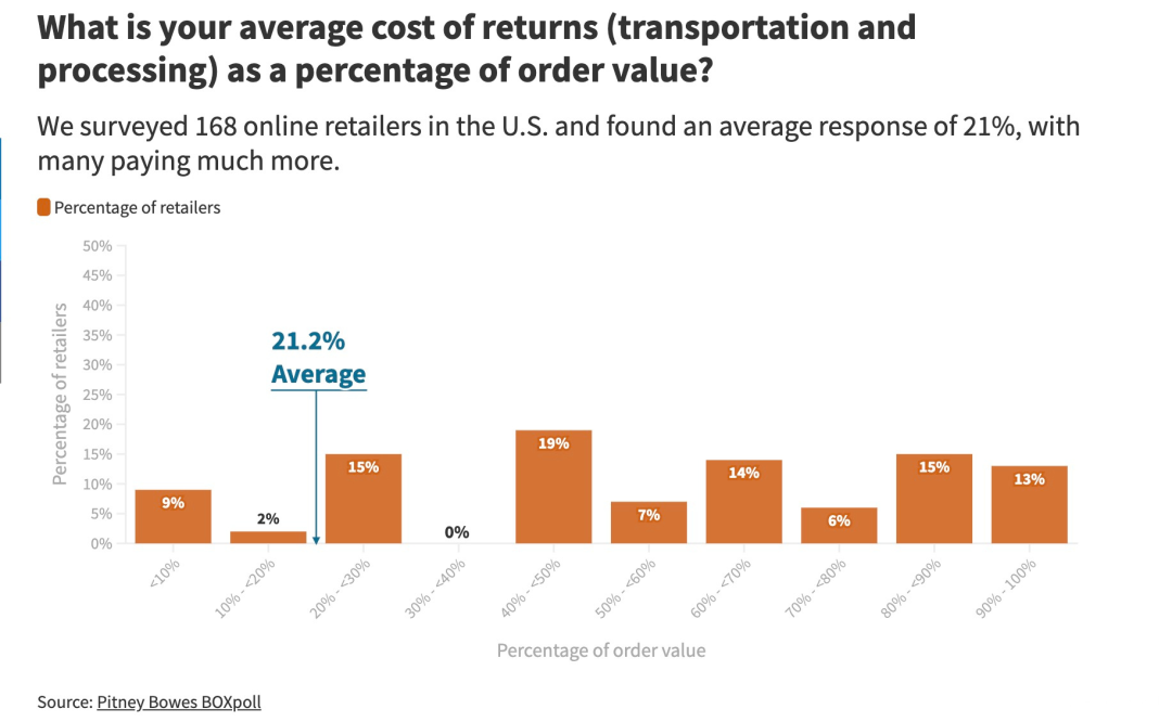 据相关数据显示,近年来,全球跨境网购退货率高达30%,每年零售商约在退货方面损失1000亿美元。美国的网购退货率更是不断攀升,从2020年的18.1%跃升至2021年的平均20.8%,这也加剧了卖家们成本负担。