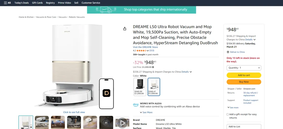 图/追觅亚马逊产品页