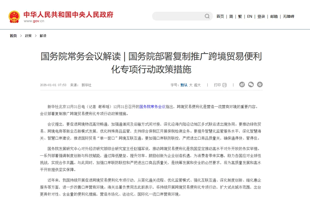 国务院常务会议:推动跨境电商等新业态新模式发展