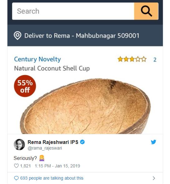 这看起来像个笑话,但是在网站上快速搜索一下,疑虑消除。该产品最初的售价是3000卢比,卖家好心地以1365卢比的价格卖掉了半个椰子壳。