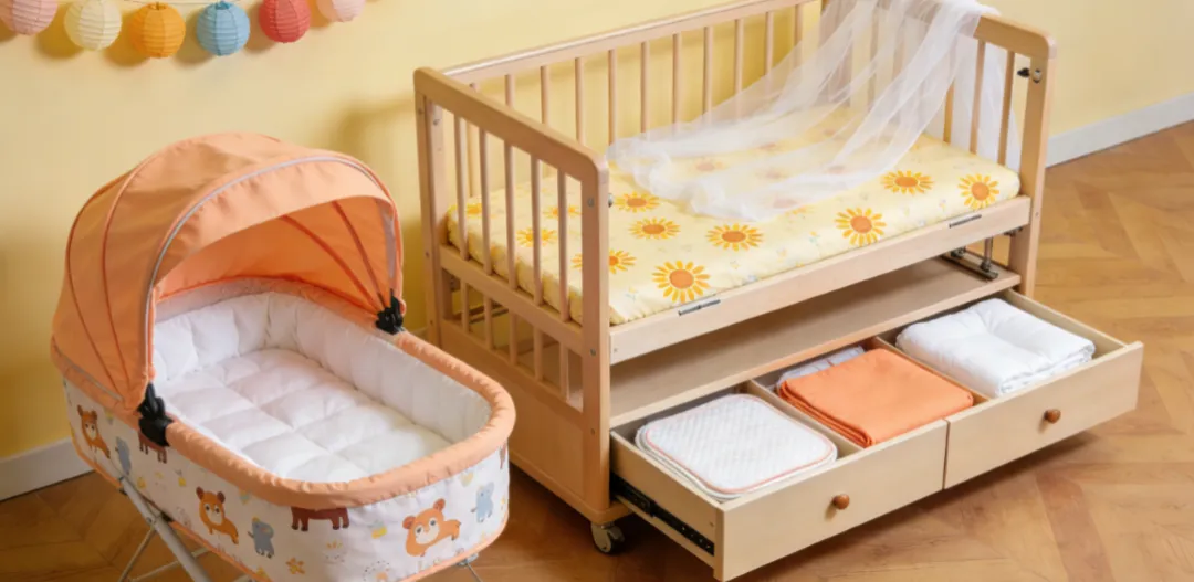 核心床具类婴儿床(0-24 月龄)、摇篮式婴儿床(0-4 月龄)、摩西篮、摇篮(0-6 月龄)、床边床(拼接床)、家用幼儿床、便携式折叠幼儿床(旅行幼儿床 / 婴儿围栏,需带底板)。划重点:无底板的婴儿围栏不在政策覆盖范围内。