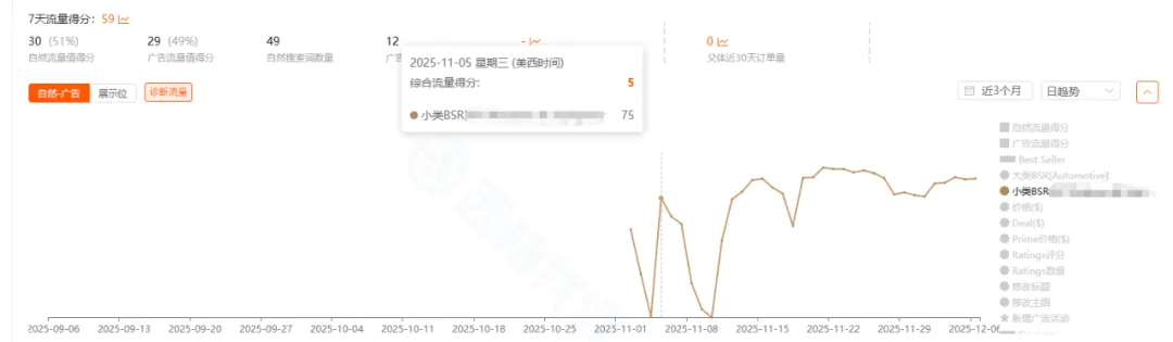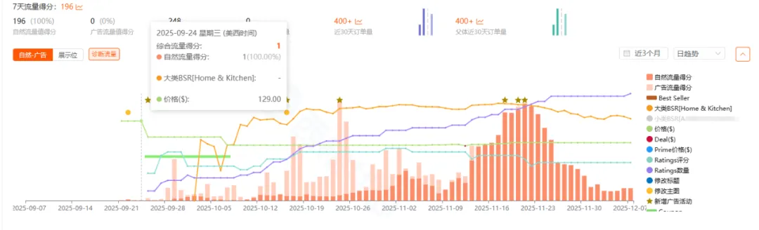 结合我的实操案例:一款季节性小众产品,10月28日注册10个VINE名额,约10天后被全部领取,期间销售排名从无到有,最终稳定在小类目前75名。若当时一次性注册30个名额,会在短时间内产生大量集中订单,排名可能瞬间冲高至更靠前的位置,但由于链接缺乏基础销量支撑,排名会快速回落,形成“虚高暴跌”的局面,反而不利于后续推广。