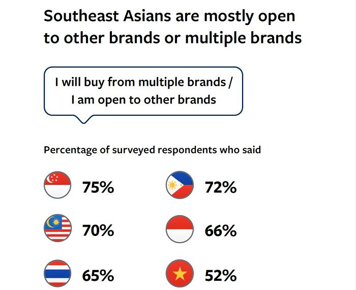 “仅在马来西亚,有70%的受访者表示,他们要么对其他品牌持开放态度,要么会在网上购买多个品牌的商品。”这意味着各种规模的企业,包括专业玩家,都有机会在东南亚进行更大规模的竞争。”
