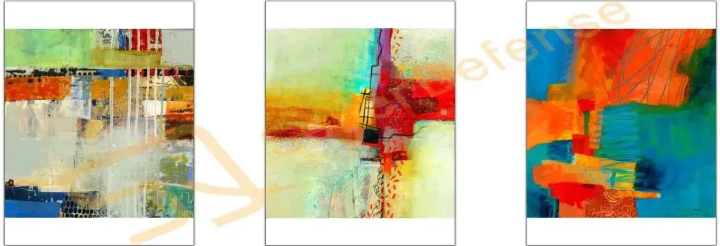 原告 JANE DAVIES 是一位全职画家,她以绘画和拼贴为创作媒介,并在北美和线上教授抽象绘画。她喜欢收集视觉元素,比如线条、形状、色彩等等,并观察它们在画布上组合在一起的效果。她的一些作品可能看起来随意,但每一件作品都经过精心构思、构图和多次修改,以达到一种元素仿佛偶然组合的效果。