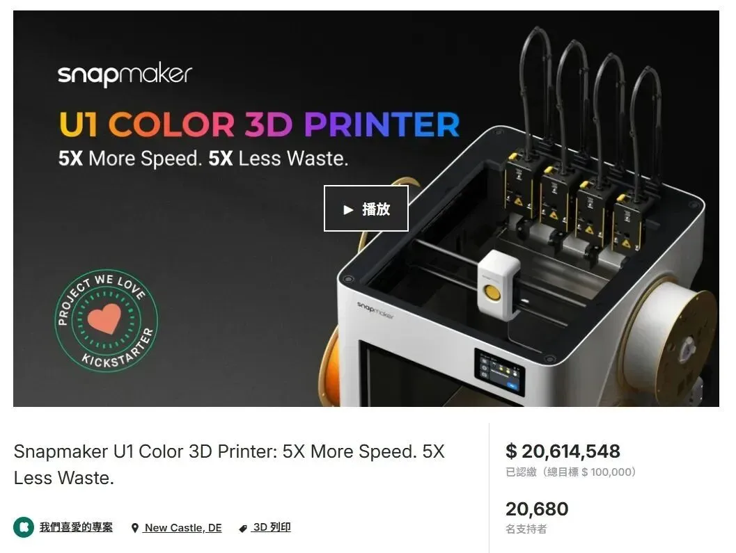 Snapmaker U1海外众筹2061万美金收官!中国品牌强势霸榜Kickstarter