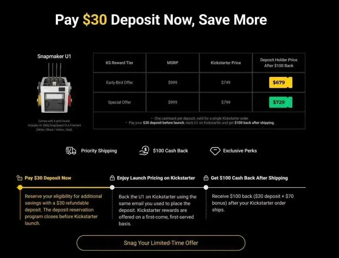 在海外众筹领域,“高金额”从来不是偶然结果,而是对“产品价值-用户需求-传播策略”三者精准匹配的必然回报。Snapmaker U1能在Kickstarter脱颖而出,本质上是踩准了海外众筹的三大核心逻辑。